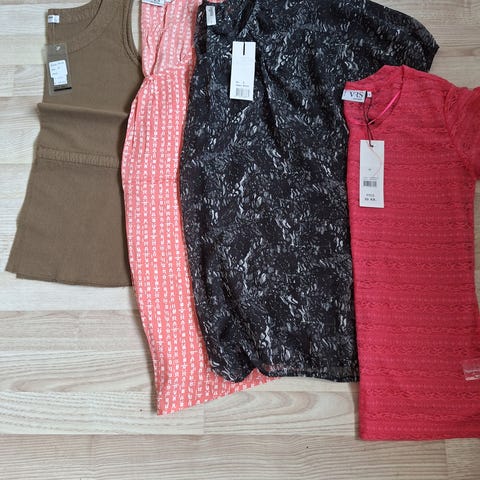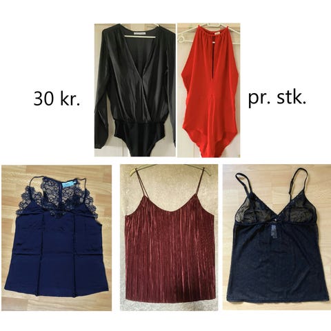 19 toppe i elastik stof. Alle i pæn stand. Nogle stort set ikke brugt, nogle ikke brugt, andre brugt lidt, men alle pæne og rene. Sælges samlet. De er alle i str. 12-14 år.