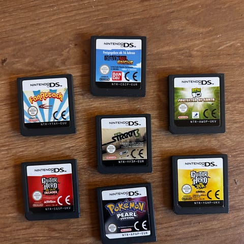 Nintendo DS spilpakke bestående af 7 forskellige spil til Nintendo DS konsol. Spil inkluderer titler som Pokémon Emerald, pokemon mysteries Dungeon og Hugo kilo og Stich Beyblade Spilene er kompatible med Nintendo DS systemet og egner sig til forskellige spilgenrer.