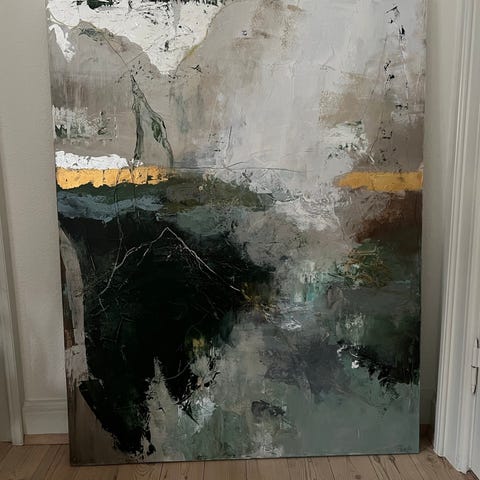 Maleriet er 90x120 cm stort & står til en nypris på 3199 kr.