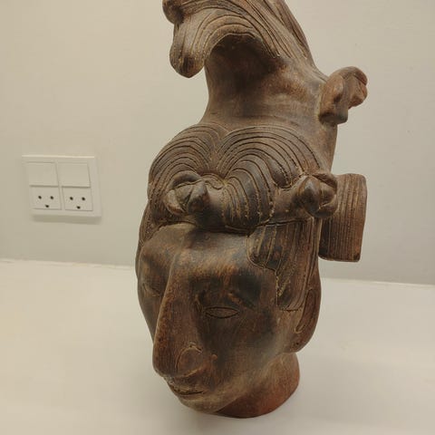 Fin gammel Apollo buste - brun farve og detaljeret udformning.