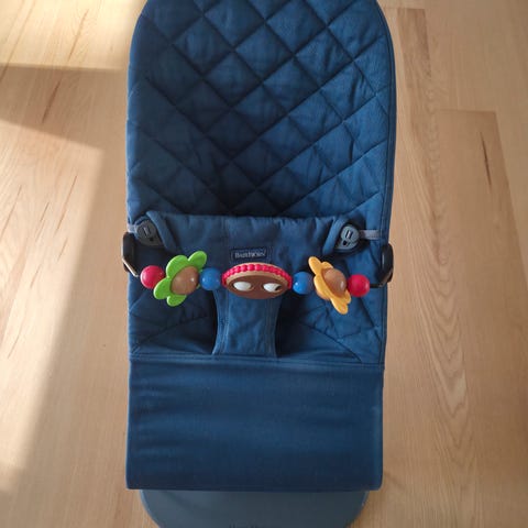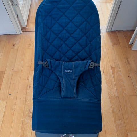 BabyBjörn Balance Soft skråstol i sort og grå. Skråstolen har polstret sæde med stofbetræk og justerbar sele foran. Stellet er i metal med buet bund, der giver en vuggende bevægelse, når barnet bevæger sig. Egnet til spædbørn og mindre børn inden for den vægtgrænse, producenten angiver. Betrækket kan tages af til rengøring efter producentens anvisninger. Velegnet som hvilested til barnet i hjemmet, f.eks. i stue eller køkken, hvor barnet kan sidde eller ligge og følge med i omgivelserne.