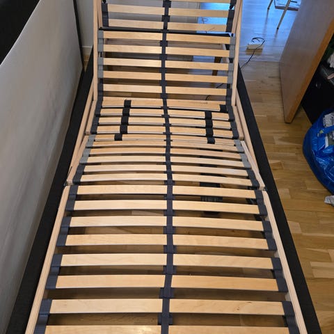 Rigtig lækker elevationsseng stort set ubrugt da jeg havde købt to til sønnen men han vil ikke have dobbeltseng, så han beholder selv den anden “solo” seng af dobbeltsengen.