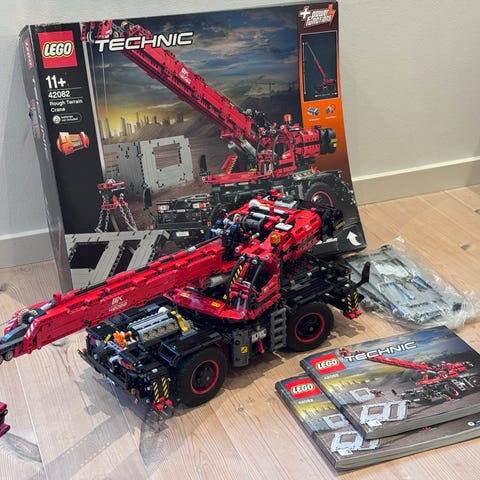 LEGO Technic 42080 kranbil legetøj med detaljeret kranmekanisme. Passer til aldersgruppen 10-16 år. Indeholder flere bevægelige dele og tekniske funktioner, der illustrerer bygge- og konstruktionsprincipper.
