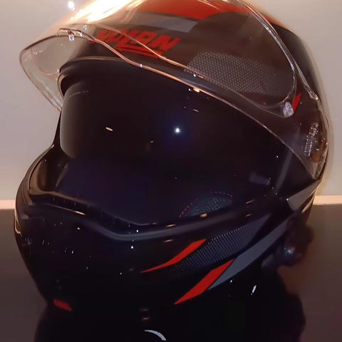 Nolan flip-up hjelme med Nolan intercom på begge hjelme. Sælges samlet, brugt 1 sæson. Nolan N104A motorcykelhjelm i gul farve, størrelse XL og S Hjelmene vejer hhv. 1760 og 1540 gram. Har solbrille og klart visir.