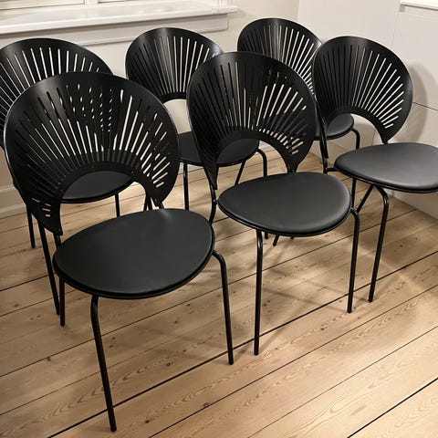 Sælger 6 stk. Nanna Ditzel stole, model trinidad 3398 med armlæn. De fremstår fine, i sort farve med mat chrom ben. Sælges samlet.