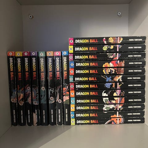 Dragon Ball manga bøger samling bestående af flere bind med forskellige historier og karakterer fra Dragon Ball universet. Bøgerne indeholder illustrationer og tekst i sort-hvid og er velegnede til fans af serien og samlere.