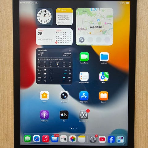 Ipad 9 generation. Skærmen er fejlfri. Der er nogle brugs spir på bagsiden, da den jo ligger på et bord. Fejler intet og er i perfekt stand. Nypris 2700