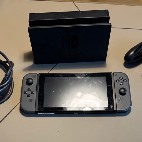 Nintendo Switch konsol med Fortnite Joy-Con controller i blå og gul