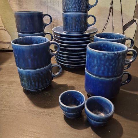6 sæt kaffekop m. underkop i brunlige nuancer.