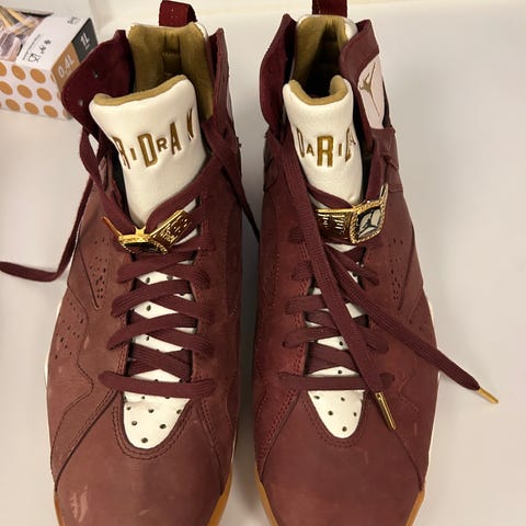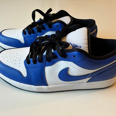 Brugt meget sparsomt, som i 4-5 gange. Indersålen er lidt washed, men det er typisk Jordans, efter få gange med dem på.