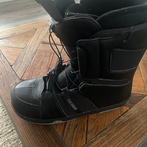 Salomon Launch Boa 3L Ballistic snowboardstøvler i størrelse 42. Støvlerne er sorte med hvide såler og har Boa snøresystem for nem og præcis tilpasning. Designet til voksne brugere.