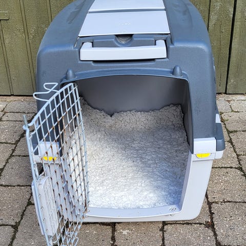 Kassen har håndtag på toppen for nem transport. Velegnet til transport af små til mellemstore hunde - anvendt til beagle.