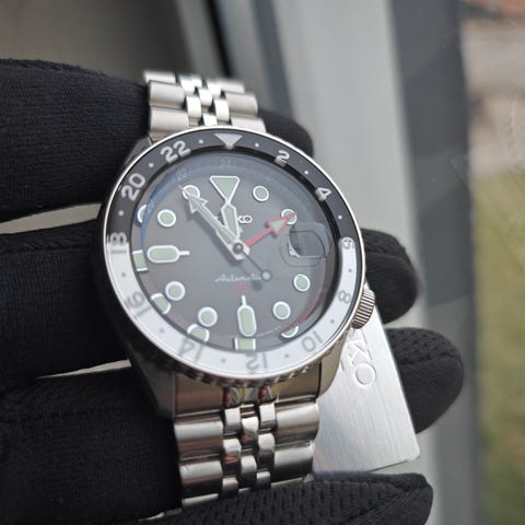 "strapmonster" - der er huller i hornene, som i et Seiko5 så det er hurtigt at skifte rem/lænke. (22 mm)