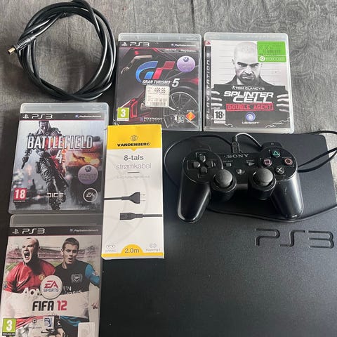 Sony Playstation 3 konsol med kabler