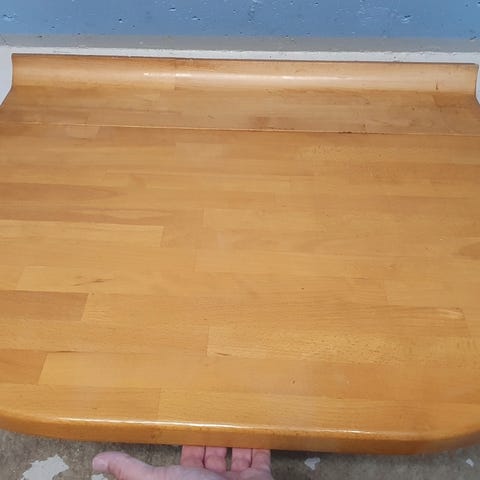 Det lille stykke bordplads (bagest) i nedslået tilstand er D5,5 cm.