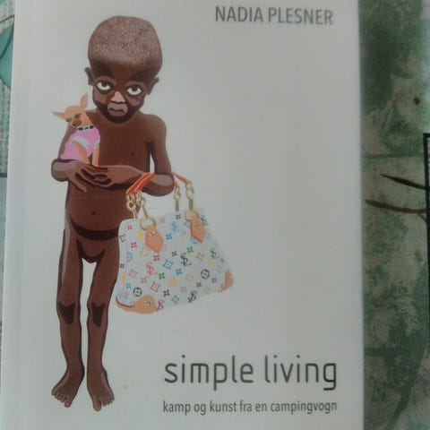Værket `simple living ` viser et nøgent barn med en lille hund og en luksustaske, for at sætte fokus på Dafur-konflikten.