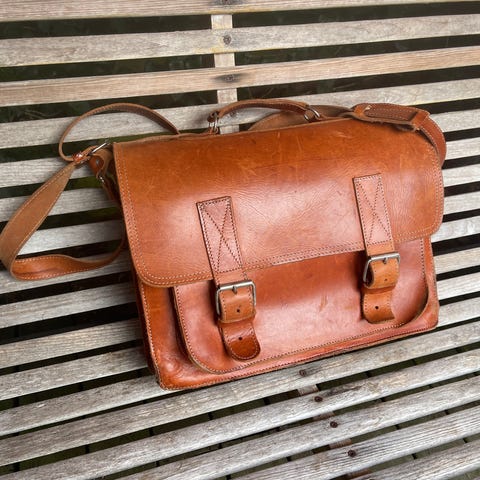 Ældre skuldertaske / mappe med aftagelig strop, et stort rum, meget fint stand, mærket: "BREE HANDMADE".