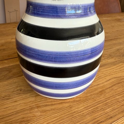 Kähler omaggio vase i hvid med sorte striber.