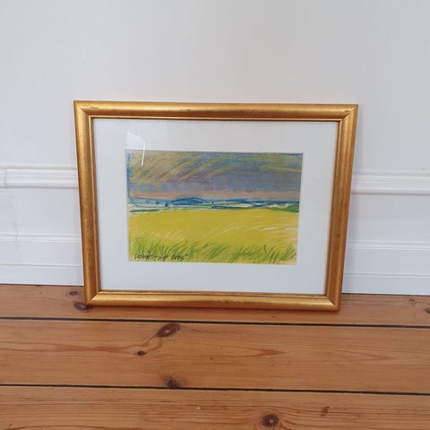 Indrammet oliemaleri signeret af Ulrik Hoff, "Maj dag ved Trøjborg," 2009.H 33 cm, B 34 cm.Flot og velholdt.