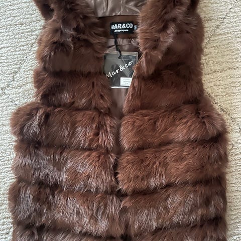 Luksus Fake Fur pelsvest med hætte.