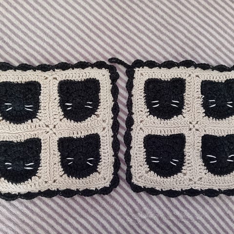 Sorte hæklet grydelapper/bordskåner, Grydelapper hæklet i boblemønster og dobbeltgarn, så de er tykke og gode i brug.