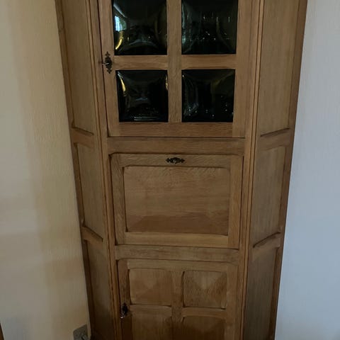 Meget smukt antikt hjørneskab i mahogni og blyindfattede ruder.