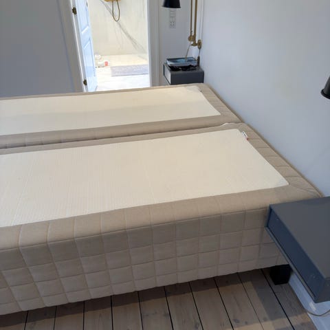 IKEA STUVELAND boxmadras. Er brugt få gange som gæsteseng, men skal udskiftes med sovesofa. Nypris 5199 kr. Egetræsben medfølger. Er meget tung, så der skal to til bære den ud.