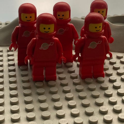Sælger 3 stk. LEGO Classic Space minifigurer i sort / sorte astronauter.