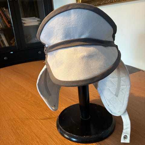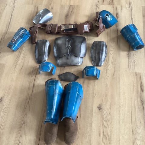Star wars boba fett-hjelm. Brugt til utallige udklædningsfester, men nu skal den videre. Hovedbånd kan justeres. Er med lydfunktion, der har 3-4 forskellige kommandoer fra fett. Aktiveres på siden.