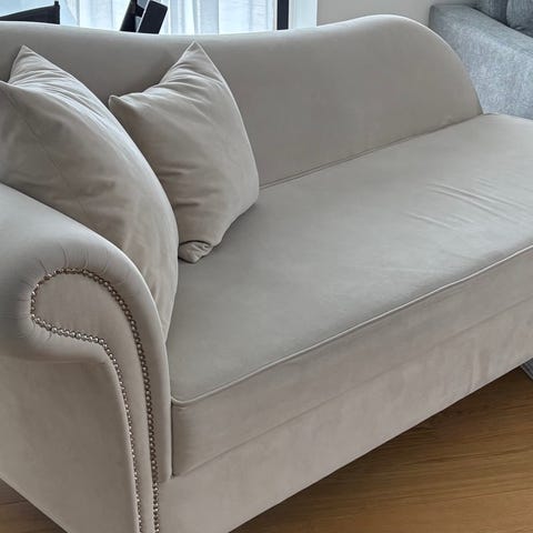 Flot velholdt fra ikkeryger hjem beige/grå/off White farvet. Alt kan vaskes på den. Behagelige hår at sidde og ligge på.