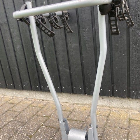 Cykelholder til træk, meget solid til 3 cykler, sammenklappelig efter brug.