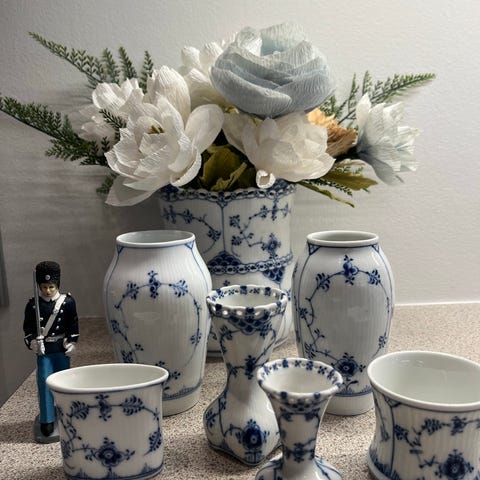 Royal Copenhagen Musselmalet Riflet tallerken i hvid porcelæn. Tallerkenen har et riflet mønster og er fremstillet af porcelæn. Jeg har 6 stk.