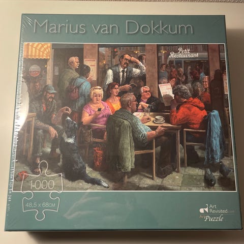 1000 brikker, måler 72 x 51 cm når det er færdiglagt.