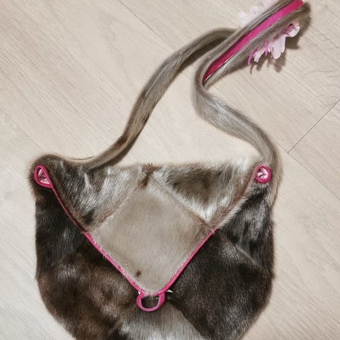 Sød taske i rødt sælskind og rødt ruskind. Se også mine andre annoncer med grønlandske sager.