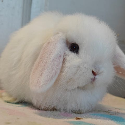 Super lækker hvid blåøjet Minilop hanunge på 8 uger, søger et godt hjem.