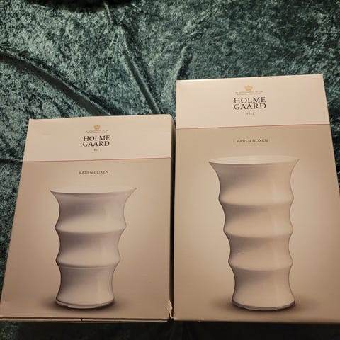 Holmegaard Karen Blixen urtepotter, 2 stk. Fremstillet i klart glas med en rund form. Velegnet til brug som dekoration, blomster eller som lysestage.