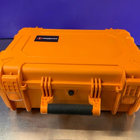 Condition 1 beskyttelsesboks i gul farve med skumindlæg. Boksen er designet til sikker opbevaring og transport af følsomt udstyr og har en robust konstruktion.