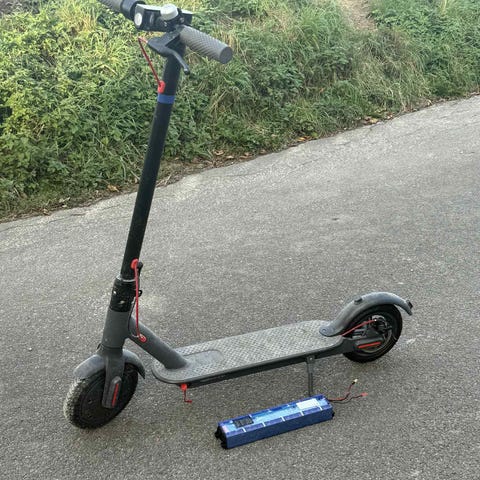 Den har en motor start knap ved højre fod. Har testet motoren med den knap og en 12 volt batteri og den drejer fint men skal bruge 2 batterier ville jeg tror at den kan skubbe en person. Alt EL undtagen gas håndtag og baglygte virker. Ved ikke hvad er galt derfor sælges billigt som defekt.