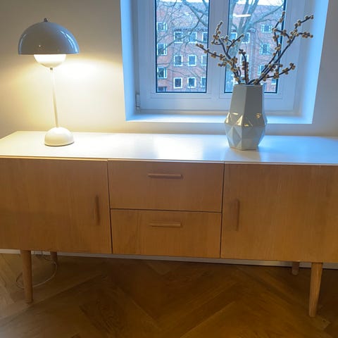Fin skænk skal videre, da jeg har brug for mere opbevaring end denne. Den kan nemt transporteres også i lille bil, da den er nem at skille ad.