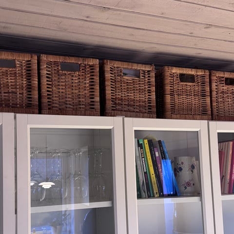 IKEA opbevaringskurv i flet med firkantet form og udskårne håndtag. Kurven kan anvendes til opbevaring af forskellige genstande i hjemmet.