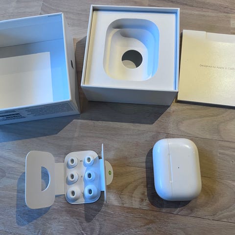 Jeg har for nyligt købt de ny airpods pro og derfor sælger mine gamle airpods pro 2. Der var en defekt på venstre airpod og de begge to blev skiftet til hel nye airpods. Kommer med original kasse og pakning.