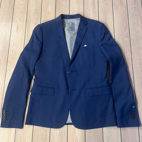 Brugt men i fin stand halvt uld. Flot foer. Brugt af en str L. Der er enkelte små brugstegn fx en lille plet på bukserne men det kan nok renses eller tørres væk.
