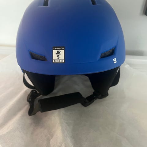 Salomon JR S skihjelm i blå med justerbar størrelse fra 51 til 55 cm. Hjelmen har ventilation og polstret inderside for komfort og beskyttelse.