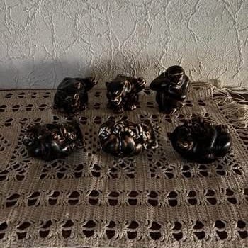 Brune Bjørn keramik figurer Royal Copenhagen Knud Kyhn. Ialt 6 stk. Hver figur forestiller en bjørn i forskellige positioner. Velegnet til dekoration i hjemmet.