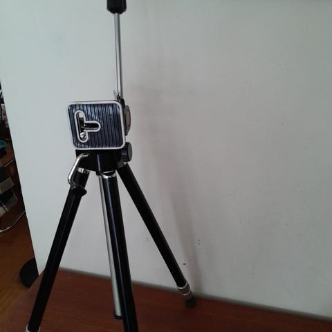 Justerbart tripod kamera eller kikkertstativ i sort og sølvfarve med tre ben. Velegnet til fotografering og videooptagelse, kan justeres i højden for forskellige optagevinkler.