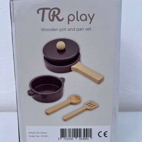 Lege køkken med gryde, låg, pande og to redskaber