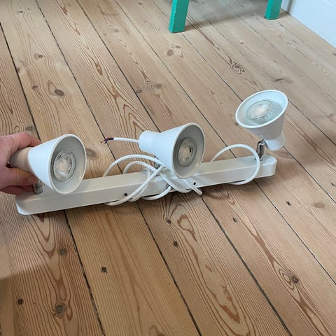 Rigtig god loftslampe eller væglampe med 4 spots, der kan drejes i alle retninger.
