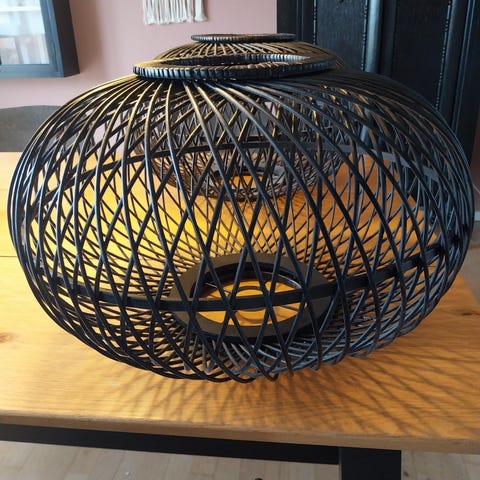Ellos loftlampe med flettet rattan og sort metal