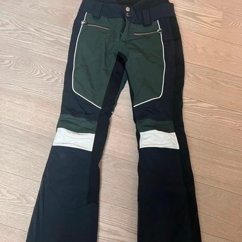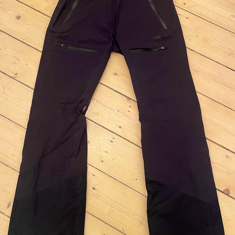SOS skibukser til kvinder i størrelse S. Bukserne er designet til sport og udendørs aktiviteter og har flere lommer med lynlås samt forstærkede områder for øget holdbarhed.