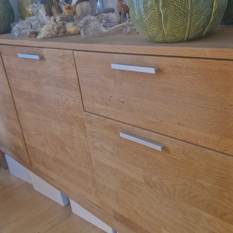 Flot skænk i mørk egetræ. Fremstår som ny.